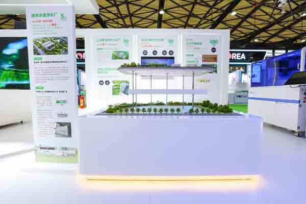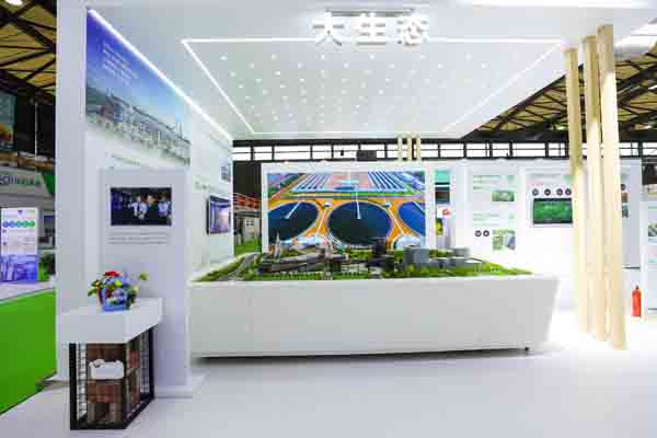 展厅分为“服务美丽中国、服务健康中国、服务人民城市”三个主题展区,集合了上实集团旗下与环保和ESG高度契合的产业项目案例。如上海市级重点工程宝山再生能源利用中心、全国最优出水标准之一的全地埋西岑水质净化厂、上海市首个污泥炭化项目上海奉贤西部污水厂、无锡上实惠投环保有限公司的尾水湿地案例、长江中游规模最大的水质净化项目之一武汉汉西污水处理厂、致力于污水净化数智化的龙江环保集团、以及中环水务、康恒环境、粤丰环保、星河能源等企业在践行绿色发展理念、服务美丽中国国家战略上的最新技术和工艺亮点。