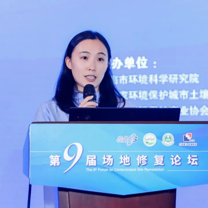 上海市环境科学研究院杨洁正高级工程师作了《大型搬迁化工区场地风险管控+源削减与低扰动修复分阶段达标路径探索》的主旨报告