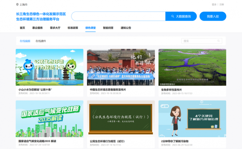 [绿色培训即时听] 服务平台建设环境绿色培训课堂,在提供生态环境相关问题培训视频和课件的在线展示服务的基础上,增加在线培训功能,为用户提供环保热点问题的在线解读。
