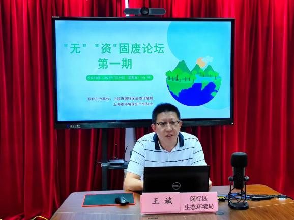 闵行区生态环境局辐射与固废监督管理站王斌站长代表联合主办方致辞,他提到,本次论坛为企业结构的进一步优化,“无废城市”的响应创建,企业固废减量化、资源化意识的提升提供一定的帮助。同时,为产废企业后疫情时期防疫情、稳经济、复工复产作支持和引导。