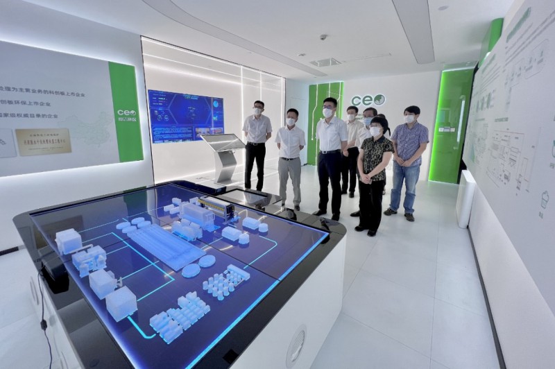 调研座谈后,黄文俊董事长陪同朱石清副局长等各位领导参观了复洁环保展示厅及节能低碳装备智慧运维平台,进一步了解了企业发展历程、业务领域、创新方向、核心技术与典型案例等情况,各位领导给予了充分肯定。