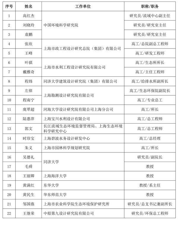 上海市中央水污染防治资金项目技术审查专家库公示名单(第一批)