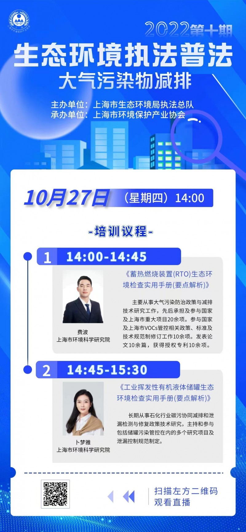 为深入打好污染防治攻坚战,落实生态环境保护法律法规标准等要求,坚持精准治污、科学治污、依法治污,加快解决当前挥发性有机物(VOCs)治理存在的突出问题,推动环境空气质量持续改善和“十四五”VOCs 减排目标顺利完成,由上海市生态环境局执法总队主办、多多28承办的上海市生态环境执法普法培训(2022年第十期)即将开班。