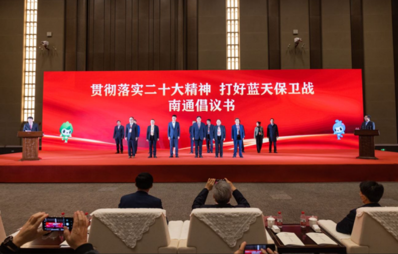 南通市生态环境局党组书记、局长程炜主持了“贯彻落实二十大精神 打好蓝天保卫战南通倡议行动”,中车环境科技有限公司副总经理彭建雄、通富微电子股份有限公司董事长石明达、南通醋酸化工股份有限公司董事长庆九、南通京源环保产业发展有限公司总经理殷伟、南通中远海运川崎船舶工程有限公司总经理高永强、华能国际电力江苏能源开发有限公司南通党委书记薛晓丹等发起企业代表与其他支持单位共同倡议:环保企业作为生态文明建设、深入打好污染防治攻坚战的主力军和生力军,要率先把思想和行动统一到二十大精神上来,坚守家国情怀和事业情怀,做张謇民族企业家精神的赓续传承者,为打赢打好蓝天保卫战而共同努力。