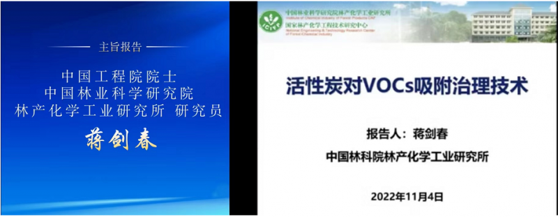 中国工程院院士、中国林业科学研究院林产化学工业研究所研究员蒋剑春作题为“活性炭对VOCs吸附治理技术”的报告,对我国目前溶剂回收中关键吸附材料的发展和应用做了详细的阐述。