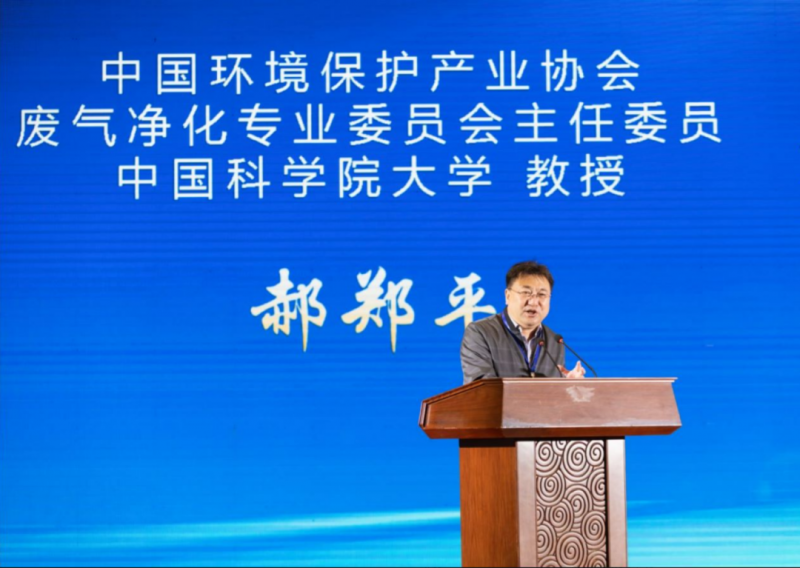 中国环境保护产业协会废气净化专业委员会主任委员中国科学院大学教授郝郑平主持主旨报告环节。