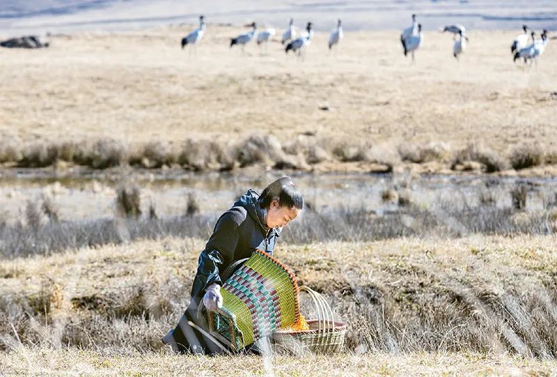 近年来,云南大山包黑颈鹤国家级自然保护区积极实施湿地保护与恢复、湿地生态效益补偿、食物源基地建设等管护措施,使这里逐渐成为黑颈鹤在云贵高原上最重要的越冬栖息地和迁徙中转站。图为2022年12月11日,志愿护鹤员在大山包黑颈鹤国家级自然保护区准备给黑颈鹤投食。新华社记者 曹梦瑶/摄