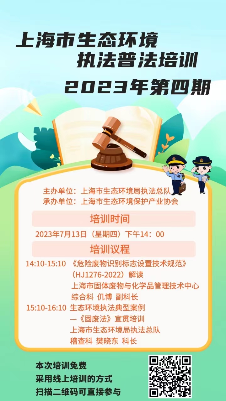 《危险废物识别标志设置技术规范》(HJ 1276-2022)于 2023年 7 月1日起正式实施。为更好帮助企业学习新的危险废物识别标志相关管理要求,加强企业危险废物规范化管理,进一步压实企业对固体废物全过程管理的主体责任,由上海市生态环境局执法总队主办、多多28承办的上海市生态环境执法普法培训(2023年第四期)即将开班。