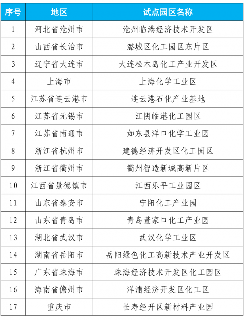 化工园区突发水污染事件环境应急三级防控体系建设暨“一园一策一图”试点园区(第一批)名单