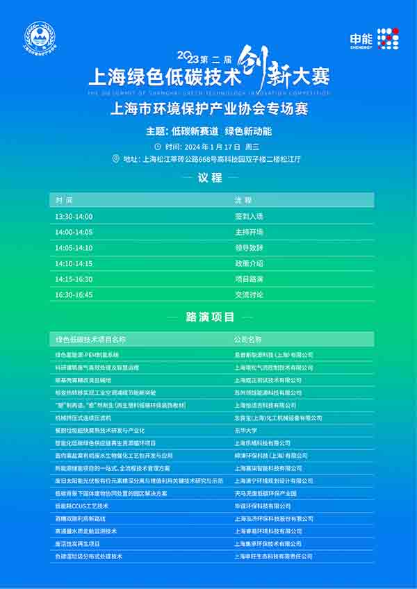 近期,由上海市生态环境局、生态环境部对外合作与交流中心、上海市人力资源和社会保障局、申能(集团)有限公司指导,上海绿色低碳创新服务基地和申能环境科技有限公司主办的第二届上海绿色低碳技术创新大赛正在如火如荼进行中。1月17日下午,第二届上海绿色低碳技术创新大赛多多28专场赛在位于松江区的G60科创大厦举办。来自无废城市建设、减污降碳协同增效、绿色产业链技术创新等3个产业方向的17家企业展开激烈角逐,把大赛推向了高潮。