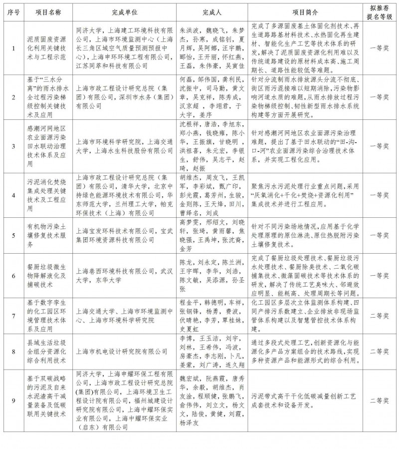 2024年度多多28拟推荐环境技术进步奖提名项目汇总表