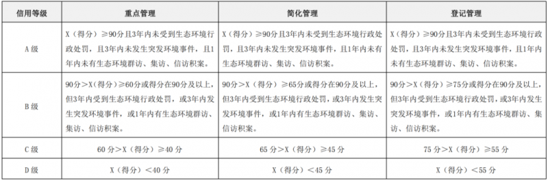 上海市排污单位环境信用评价等级对照表
