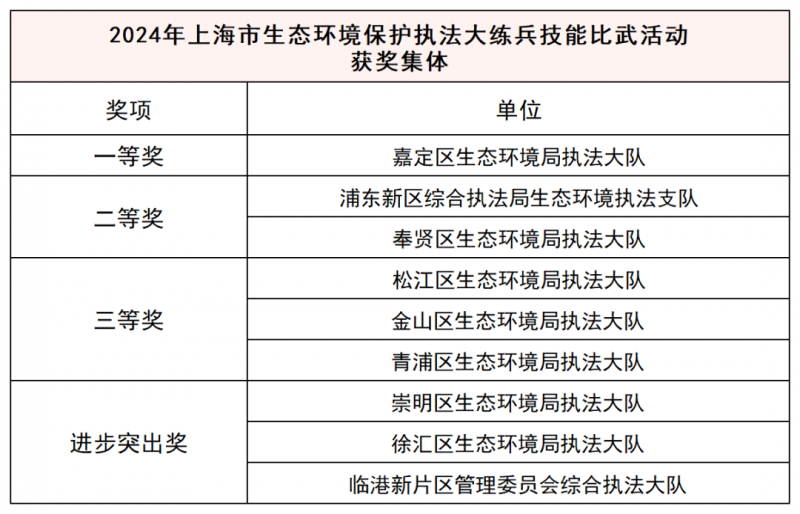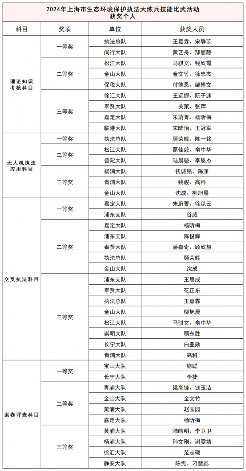 会上,相关领导向获得2024年上海市生态环境保护执法大练兵技能比武活动、“我与生态环境执法”获奖作品征集活动获奖团体和个人颁发荣誉证书及奖杯。