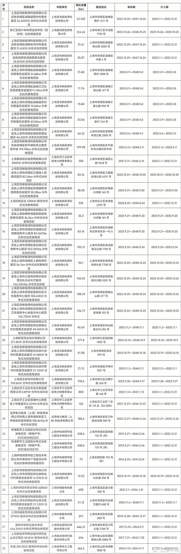 附件:上海碳普惠分布式光伏发电第九批减排项目清单