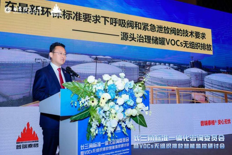 南京普瑞泰格安全设备工程有限公司张岩董事长分享了《呼吸阀和紧急泄压阀的安全和环保技术要求》主题报告。
