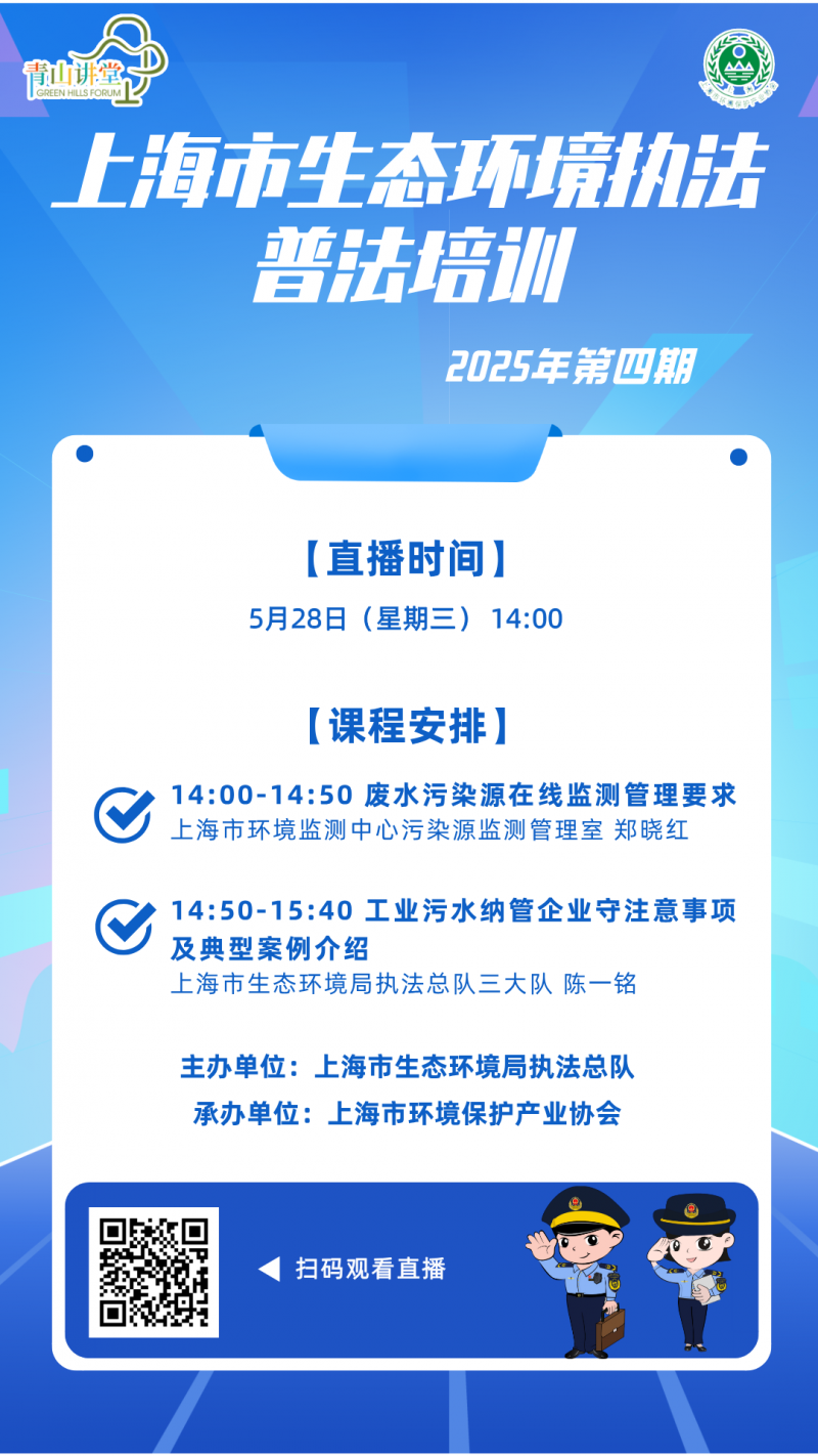 为进一步强化废水排放全过程监管,提升污染源在线监测数据质量,规范工业污水纳管企业环境管理,深化“科学监测、严格执法、主动守法”的协同治理机制,由上海市生态环境局执法总队主办、多多28承办的2025年第四期生态环境执法普法培训即将开班。