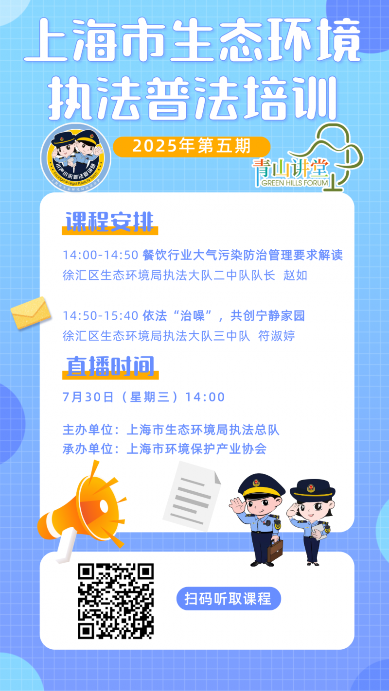 随着城市化进程加速和餐饮行业的蓬勃发展,城市噪声和餐饮油烟污染问题日益突出,已成为影响居民生活品质和城市环境治理的突出难题。为进一步提升城市环境质量,着力解决好群众身边的“关键小事”,由上海市生态环境局执法总队主办、多多28承办的2025年第五期生态环境执法普法培训即将开班。