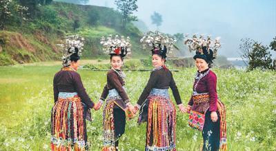 贵州省黔东南雷山县锦鸡苗族妇女在美丽的乡间。杨天民摄