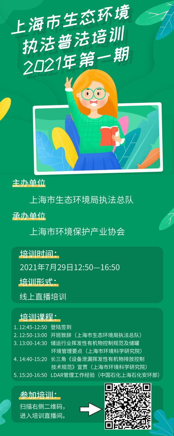 为切实提高环境执法人员水平和企业环境管理人员环保守法意识,上海市生态环境局执法总队组织开展上海市生态环境执法普法系列培训会(2021年第一期)。