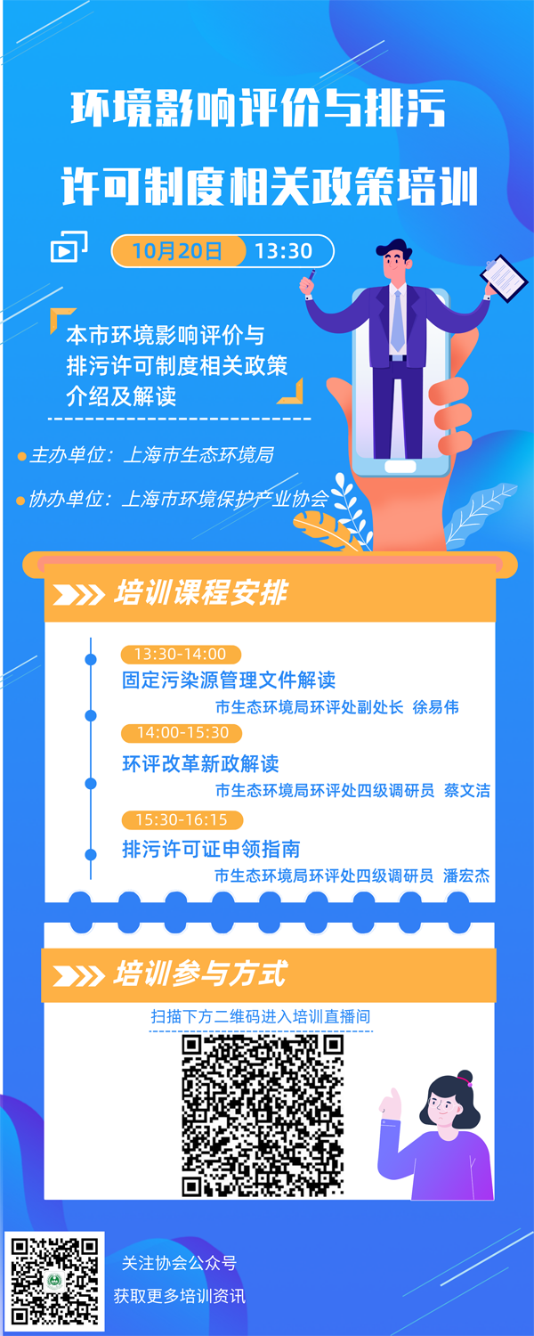 结合近期发布的环境影响评价及排污许可相关政策,上海市生态环境局环境影响评价与排放管理处将组织开展政策介绍及解读。