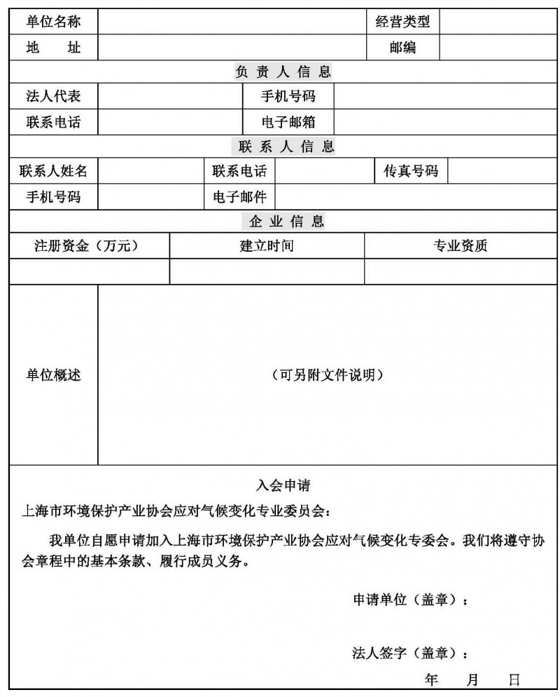1. 提出入会申请、填写入会登记表一式2份,须由申请单位负责人签署意见并加盖单位公章,申请单位应确保登记表所填内容的真实性;