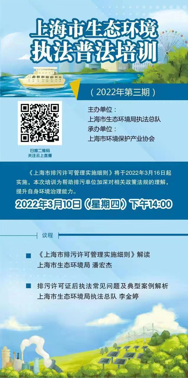 为帮助排污单位加深对相关政策法规的理解,提升自身环境治理能力,由上海市生态环境局执法总队主办、多多28承办的上海市生态环境执法普法培训(2022年第三期)即将开班。