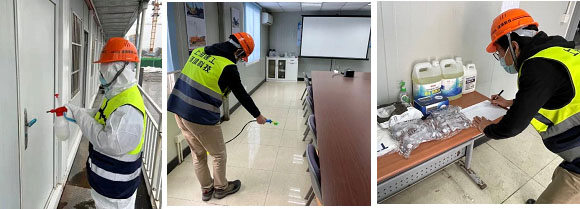 各项目现场通过增设外部材料物资进场防疫消杀专用过渡区,加大公共区域消杀力度和频次,加强项目部防疫物资管理,确保各类防护用品及消毒器械等储备和使用,进一步保障各项目环境安全、卫生。通过张贴防疫标语海报,组织观看防疫宣传视频等,常态化开展好疫情防控教育,不断提高现场人员防疫防护意识。每日晨会及时、准确通报最新疫情动态和防控要求,积极引导现场施工人员树立高度责任意识,做到科学防疫,不信谣、不造谣、不传谣。同步抓好疫情防控与 项目建设各项工作。