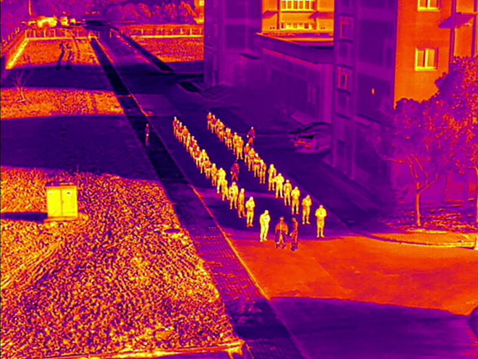 公司无人机装载红外热成像传感器,借助热成像技术,不仅可以远距离、全覆盖、高效率的测出区域人群温度,而且还可以避免大量人力支出,减少人员接触,实现安全防控。